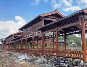 湖北黃岡小青瓦防腐木古建長(zhǎng)廊